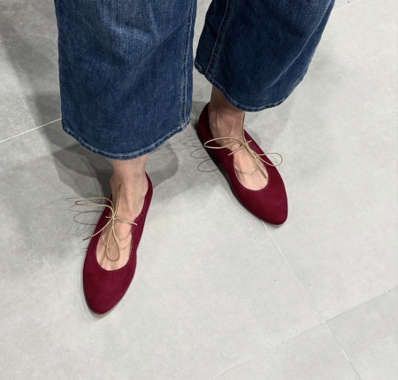 Opis: materiał wierzchni - skóra naturalna zamszowa, elementy beżowa skóra licowa. kolor - czerwony przód buta - nosek okrągły...